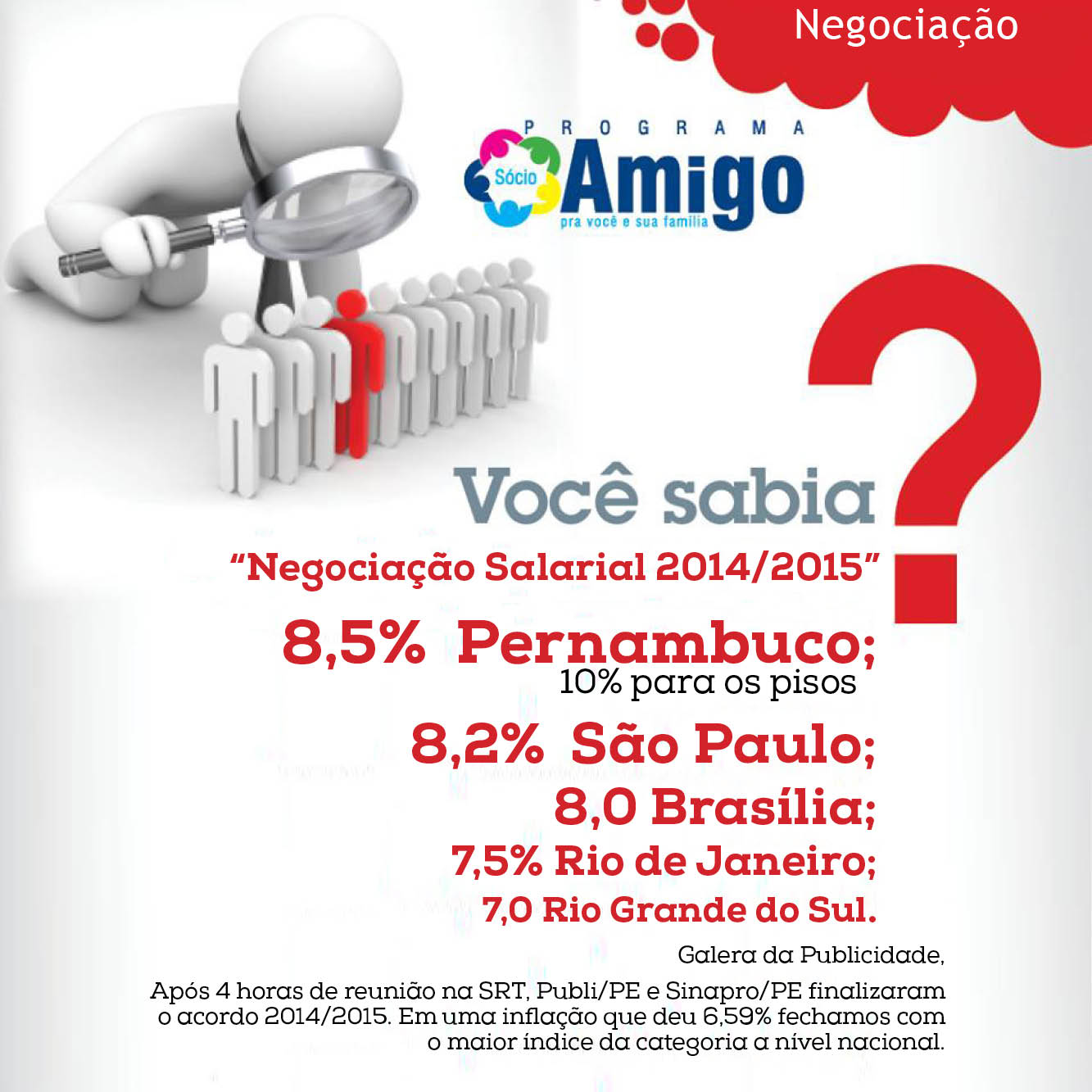 Galera da Publicidade, Após 4 horas de reunião na SRT, Publi/PE e Sinapro/PE finalizaram o acordo 2014/2015. Em uma inflação que deu 6,59% fechamos com o maior índice da categoria a nível nacional.